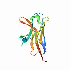Triggering receptor expressed on myeloid cells 2 (TREM2) is a protein that in humans is encoded by the TREM2 gene.[5][6][7] TREM2 is expressed on macrophages, immature monocyte-derived dendritic cells, osteoclasts, and microglia,[8] which are immune cells in the central nervous system.[9] In the liver, TREM2 is expressed by several cell types, including macrophages, that respond to injury.[10] In the intestine, TREM2 is expressed by myeloid-derived dendritic cells and macrophage.[11] TREM2 is overexpressed in many tumor types and has anti-inflammatory activities. It might therefore be a good therapeutic target.