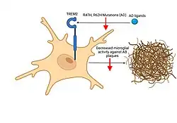 - 1 2 Walter J (February 2016). "The Triggering Receptor Expressed on Myeloid Cells 2: A Molecular Link of Neuroinflammation and Neurodegenerative Diseases". The Journal of Biological Chemistry. 291 (9): 4334–4341. doi:10.1074/jbc.R115.704981. PMC 4813462. PMID 26694609.