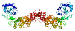 - ↑ Lai CH, Chou CY, Ch'ang LY, Liu CS, Lin W (Aug 2000). "Identification of novel human genes evolutionarily conserved in Caenorhabditis elegans by comparative proteomics". Genome Res. 10 (5): 703–13. doi:10.1101/gr.10.5.703. PMC 310876. PMID 10810093.