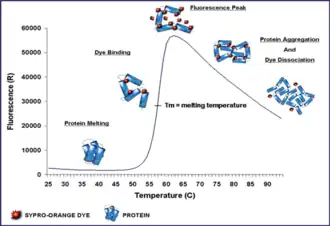 - ↑ Lavinder JJ, Hari SB, Sullivan BJ, Magliery TJ (March 2009). "High-throughput thermal scanning: a general, rapid dye-binding thermal shift screen for protein engineering". Journal of the American Chemical Society. 131 (11): 3794–5. Bibcode:2009JAChS.131.3794L. doi:10.1021/ja8049063. PMC 2701314. PMID 19292479.
