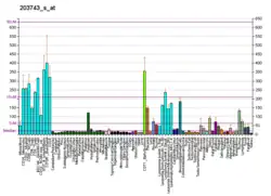 - ↑ Minty A, Dumont X, Kaghad M, Caput D (November 2000). "Covalent modification of p73alpha by SUMO-1. Two-hybrid screening with p73 identifies novel SUMO-1-interacting proteins and a SUMO-1 interaction motif". J. Biol. Chem. 275 (46): 36316–23. doi:10.1074/jbc.M004293200. PMID 10961991.