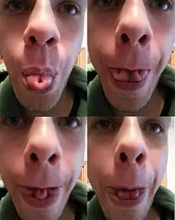 Several twin studies on the issue have been conducted. A 1952 study involving 33 pairs of identical twins found that 21% of them were discordant - that is, one of the twins had the ability and the other did not.[7] A 1971 study found that identical twins were 18% discordant, and 22% of non-identical twins were discordant, concluding that "hereditary factors strongly influences tongue rolling ability".[8] However, a 1975 found that identical twins were 28% discordant, while 31% of non-identical twins were discordant, and concluded that identical twins were no more likely than fraternal twins to both have the same phenotype for tongue rolling.[9]
