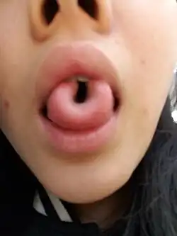 Other tongue ability is folding the tip of the tongue upwards, which has been proposed as a recessive trait in a 1948 study, with possible epistatic interaction with the rolling gene.[5][11]