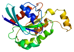 - ↑ Ihara K, Muraguchi S, Kato M, Shimizu T, Shirakawa M, Kuroda S, et al. (April 1998). "Crystal structure of human RhoA in a dominantly active form complexed with a GTP analogue". The Journal of Biological Chemistry. 273 (16): 9656–66. doi:10.1074/jbc.273.16.9656. PMID 9545299.