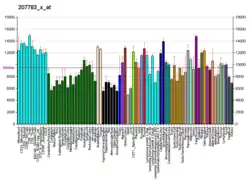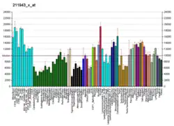 TCTP is a 20–25 kDa protein abundantly and ubiquitously expressed in the cell.[14] The protein is transcribed in more than 500 different tissues and cell types; hTCTP gene is one of the top 10 most ubiquitously expressed genes in humans by examining 1753 libraries from kinds of tissues,[23] but differed considerably in their quantity and ratio of expression. The expression is lower in kidney and renal cells.[17] This indicates an extensive transcriptional control and involvement of tissue-specific factors.[7]