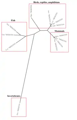 There is one known paralog for TMEM255A, called TMEM255B, which is found on chromosome 13 (position 13q34).[37] TMEM255A is only found in the kingdom of animalia, and its most distant homolog is found in invertebrata (i.e. Saccoglossus kowalenskii).
