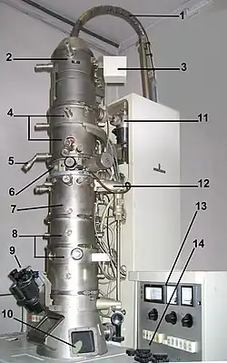 - ↑ Williams, David B.; Carter, C. Barry (1996), Williams, David B.; Carter, C. Barry (eds.), "The Transmission Electron Microscope", Transmission Electron Microscopy: A Textbook for Materials Science, Boston, MA: Springer US, pp. 3–17, doi:10.1007/978-1-4757-2519-3_1, ISBN 978-1-4757-2519-3