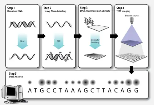 Transmission electron microscopy DNA sequencing is a single-molecule sequencing technology that uses transmission electron microscopy techniques. The method was conceived and developed in the 1960s and 70s,[1] but lost favor when the extent of damage to the sample was recognized.[2]