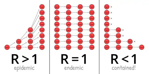 - ↑ Billah MA, Miah MM, Khan MN (11 November 2020). "Reproductive number of coronavirus: A systematic review and meta-analysis based on global level evidence". PLOS ONE. 15 (11). e0242128. Bibcode:2020PLoSO..1542128B. doi:10.1371/journal.pone.0242128. PMC 7657547. PMID 33175914.