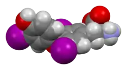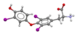 - ↑ Dietrich JW, Brisseau K, Boehm BO (August 2008). "[Absorption, transport and bio-availability of iodothyronines]" [Absorption, transport and bio-availability of iodothyronines]. Deutsche Medizinische Wochenschrift (in German). 133 (31–32): 1644–1648. doi:10.1055/s-0028-1082780. PMID 18651367.