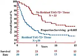 - 1 2 3 4 5 6 Hitchcock CL, Povoski SP, Mojzisik CM, Martin EJ (2021-12-07). "Survival Advantage Following TAG-72 Antigen-Directed Cancer Surgery in Patients With Colorectal Carcinoma: Proposed Mechanisms of Action". Frontiers in Oncology. 11: 731350. doi:10.3389/fonc.2021.731350. ISSN 2234-943X. PMC 8688248. PMID 34950576.