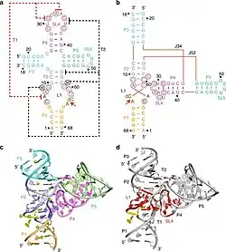 - 1 2 3 4 Liu Y, Wilson TJ, Lilley DM (May 2017). "The structure of a nucleolytic ribozyme that employs a catalytic metal ion". Nature Chemical Biology. 13 (5): 508–513. doi:10.1038/nchembio.2333. PMC 5392355. PMID 28263963.