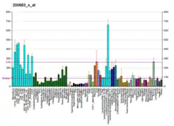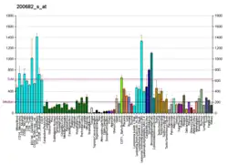 Ubiquitin-conjugating enzyme E2 L3 (UBE2L3), also called UBCH7, is a protein that in humans is encoded by the UBE2L3 gene.[5][6][7] As an E2 enzyme, UBE2L3 participates in ubiquitination to target proteins for degradation.[7] The role of UBE2L3 in the ubiquitination of the NF-κB precursor implicated it in various major autoimmune diseases, including rheumatoid arthritis (RA), celiac disease, Crohn's disease (CD), and systemic lupus erythematosus.[8]