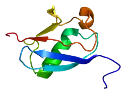 - ↑ Toniolo D, Persico M, Alcalay M (Mar 1988). "A "housekeeping" gene on the X chromosome encodes a protein similar to ubiquitin". Proc Natl Acad Sci U S A. 85 (3): 851–5. Bibcode:1988PNAS...85..851T. doi:10.1073/pnas.85.3.851. PMC 279653. PMID 2829204.