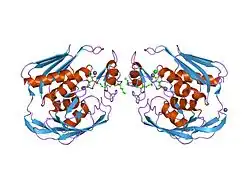 - ↑ Whittington DA, Rusche KM, Shin H, Fierke CA, Christianson DW (July 2003). "Crystal structure of LpxC, a zinc-dependent deacetylase essential for endotoxin biosynthesis". Proc. Natl. Acad. Sci. U.S.A. 100 (14): 8146–50. Bibcode:2003PNAS..100.8146W. doi:10.1073/pnas.1432990100. PMC 166197. PMID 12819349.