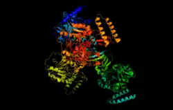 - 1 2 Roeben A, Plitzko JM, Körner R, Böttcher UM, Siegers K, Hayer-Hartl M, Bracher A (December 2006). "Structural basis for subunit assembly in UDP-glucose pyrophosphorylase from Saccharomyces cerevisiae". Journal of Molecular Biology. 364 (4): 551–60. doi:10.1016/j.jmb.2006.08.079. PMID 17010990.