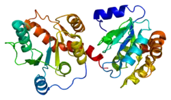 UDP-glucuronosyltransferase 2B10 is an enzyme that in humans is encoded by the UGT2B10 gene.[5][6] It is responsible for glucuronidation of nicotine and cotinine.[7][8] Due to common hypomorphic alleles of UGT2B10, glucuronidation contributes relatively little to nicotine metabolism in most people.[9]