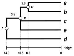 The dendrogram is now complete.[5] It is ultrametric because all tips ( to ) are equidistant from :
