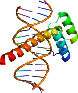 Crystallographic structure of ultrabithorax complexed with double stranded DNA.[1]