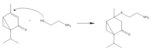 Reaction between cysteamine and umbellulone.