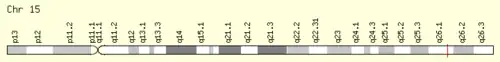 Uncharacterized Protein C15orf32 is a protein which in humans is encoded by the C15orf32 gene and is located on chromosome 15, location 15q26.1.[3] Variants of C15orf32 have been linked to bipolar disorder,[4][5] alcohol use disorder,[6] and acute myeloid leukemia.[7]