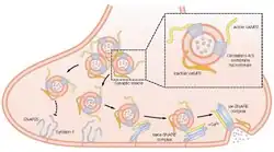 - ↑ Mollinedo F, Martín-Martín B, Calafat J, Nabokina SM, Lazo PA (Jan 2003). "Role of vesicle-associated membrane protein-2, through Q-soluble N-ethylmaleimide-sensitive factor attachment protein receptor/R-soluble N-ethylmaleimide-sensitive factor attachment protein receptor interaction, in the exocytosis of specific and tertiary granules of human neutrophils". Journal of Immunology. 170 (2): 1034–42. doi:10.4049/jimmunol.170.2.1034. PMID 12517971.
