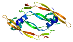 Vascular endothelial growth factor B also known as VEGF-B is a protein that, in humans, is encoded by the VEGF-B gene.[5] VEGF-B is a growth factor that belongs to the vascular endothelial growth factor family, of which VEGF-A is the best-known member.