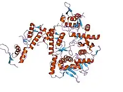 - ↑ Teo H, Perisic O, Gonzalez B, Williams RL (October 2004). "ESCRT-II, an endosome-associated complex required for protein sorting: crystal structure and interactions with ESCRT-III and membranes". Dev. Cell. 7 (4): 559–69. doi:10.1016/j.devcel.2004.09.003. PMID 15469844.