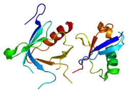 - ↑ Slagsvold T, Aasland R, Hirano S, Bache KG, Raiborg C, Trambaiolo D, Wakatsuki S, Stenmark H (May 2005). "Eap45 in mammalian ESCRT-II binds ubiquitin via a phosphoinositide-interacting GLUE domain". J Biol Chem. 280 (20): 19600–6. doi:10.1074/jbc.M501510200. PMID 15755741.