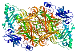 Amine oxidases are a family of enzymes that catalyze the oxidation of various endogenous amines, including histamine or dopamine. VAP-1 constitutes the copper dependent class of amine oxidases, such as lysyl oxidase or lysine demethylase, and is one of the four known in humans. The other class is flavin dependent such as monoamine oxidase (MAO) A and B.[5][8] VAP-1, in particular, catalyzes the oxidative conversion of primary amines (methylamine and aminoacetone) to aldehydes (formaldehyde and methylglyoxal) ammonium and hydrogen peroxide in the presence of copper and quinone cofactor.[8][9][10]