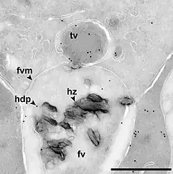 - ↑ Sidhu VK, Vorhölter FJ, Niehaus K, Watt SA (June 2008). "Analysis of outer membrane vesicle associated proteins isolated from the plant pathogenic bacterium Xanthomonas campestris pv. campestris". BMC Microbiology. 8: 87. doi:10.1186/1471-2180-8-87. PMC 2438364. PMID 18518965.