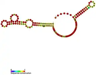 VrrA (Vibrio regulatory RNA of OmpA) is a non-coding RNA that is conserved across all Vibrio species of bacteria and acts as a repressor for the synthesis of the outer membrane protein OmpA. This non-coding RNA was initially identified from Tn5 transposon mutant libraries of Vibrio cholerae and its location within the bacterial genome was mapped to the intergenic region between genes VC1741 and VC1743 by RACE analysis.[1]