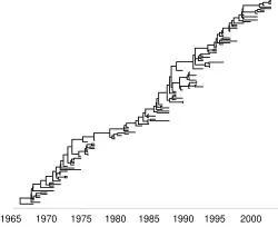 - ↑ Drummond AJ, Rambaut A, Shapiro B, Pybus OG (May 2005). "Bayesian coalescent inference of past population dynamics from molecular sequences". Molecular Biology and Evolution. 22 (5): 1185–92. doi:10.1093/molbev/msi103. PMID 15703244.