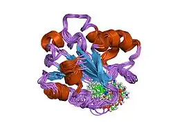 - ↑ Drennan CL, Huang S, Drummond JT, Matthews RG, Ludwig ML (December 1994). "How a protein binds B12: A 3.0 A X-ray structure of B12-binding domains of methionine synthase". Science. 266 (5191): 1669–74. doi:10.1126/science.7992050. PMID 7992050.