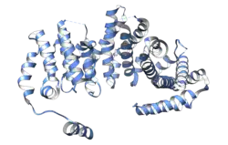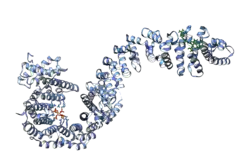 Wings apart-like protein homolog (WAPL) is a protein that in humans is encoded by the WAPAL gene.[5][6][7] WAPL is a key regulator of the Cohesin complex which mediates sister chromatid cohesion, homologous recombination and DNA looping. Cohesin is formed of SMC3, SMC1, RAD21 and either SA1 or SA2. [8] Cohesin has a ring-like arrangement and it is thought that it associates with the chromosome by entrapping it whether as a loop of DNA, a single strand or a pair of sister chromosomes. WAPL forms a complex with PDS5A or PDS5B and releases cohesin from DNA by opening the interface between SMC3 and RAD21.