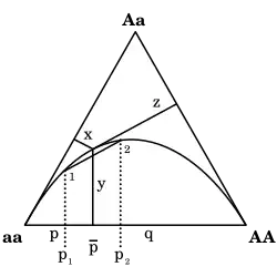 To make a slight generalization of the above example, let and represent the allele frequencies of A in and , respectively (and and likewise represent a).