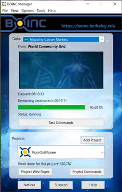 World Community Grid (WCG) is an effort to create the world's largest volunteer computing platform to perform scientific research that benefits humanity.[3] Launched on November 16, 2004, with proprietary Grid MP client from United Devices and adding support for Berkeley Open Infrastructure for Network Computing (BOINC) in 2005, World Community Grid eventually discontinued the Grid MP client and consolidated on the BOINC platform in 2008.[4] In September 2021, it was announced that IBM transferred ownership to the Krembil Research Institute of University Health Network in Toronto, Ontario.[5]