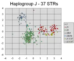 The original scientific research was based on the hypothesis that a majority of present-day Jewish Kohanim share a pattern of values for six Y-STR markers, which researchers named the extended Cohen Modal Haplotype (CMH).[4] Subsequent research using twelve Y-STR markers indicated that nearly half of contemporary Jewish Kohanim shared Y-chromosomal J1 M267 (specifically haplogroup J-P58, also called J1c3), while other Kohanim share a different ancestry, such as haplogroup J2a (J-M410).[5]