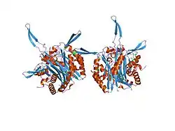 - ↑ Herz S, Wungsintaweekul J, Schuhr CA, Hecht S, Luttgen H, Sagner S, Fellermeier M, Eisenreich W, Zenk MH, Bacher A, Rohdich F (March 2000). "Biosynthesis of terpenoids: YgbB protein converts 4-diphosphocytidyl-2C-methyl-D-erythritol 2-phosphate to 2C-methyl-D-erythritol 2,4-cyclodiphosphate". Proc. Natl. Acad. Sci. U.S.A. 97 (6): 2486–90. doi:10.1073/pnas.040554697. PMC 15955. PMID 10694574.