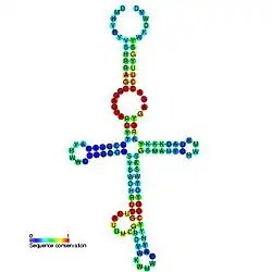 - ↑ Barrick JE, Corbino KA, Winkler WC, Nahvi A, Mandal M, Collins J, Lee M, Roth A, Sudarsan N, Jona I, Wickiser JK, Breaker RR (April 2004). "New RNA motifs suggest an expanded scope for riboswitches in bacterial genetic control". Proceedings of the National Academy of Sciences of the United States of America. 101 (17): 6421–6426. Bibcode:2004PNAS..101.6421B. doi:10.1073/pnas.0308014101. PMC 404060. PMID 15096624.