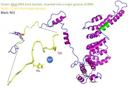 - 1 2 Summers MF (January 1991). "Zinc finger motif for single-stranded nucleic acids? Investigations by nuclear magnetic resonance". Journal of Cellular Biochemistry. 45 (1): 41–8. doi:10.1002/jcb.240450110. PMID 2005183. S2CID 45192514.