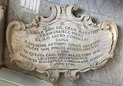 Cohen, who had revealed the plan, was given an annual pension of 300 scudi from the order's treasury and another 200 scudi from the Università of Valletta,[7] and a house in Valletta which had previously been the seat of the Università until it moved to new premises in 1721. The house remained in the Cohen family until 1773, when they were given an annuity and the building was taken over to house the Monte di Pietà.[9]