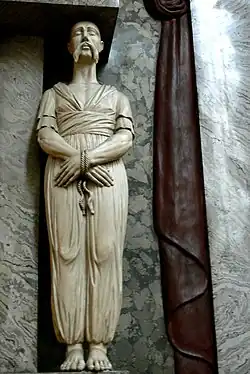 The leaders were subsequently arrested, and 38 of them were tried and executed. Some plotters converted and asked to be baptized just before being killed. One hundred and twenty-five others were hanged in Palace Square in Valletta,[6] while eight were branded with the letter R (for ribelli, 'rebels') on their forehead, and were condemned to the galleys for life.[7] On the insistence of France, Mustafa Pasha, who was behind the revolt, was not executed but was taken back to Rhodes on a French vessel.[5]