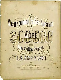 - "We Are Coming, Father Abra'am, 300,000 More" – poem by James S. Gibbons, set to music by eight different composers, including Stephen Foster.[2]