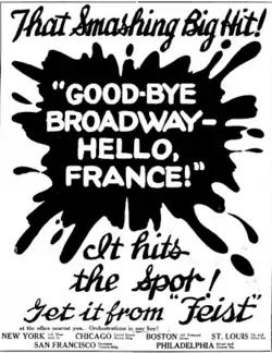 - "Good Bye Broadway, Hello France" w. C. Francis Reisner & Benny Davis m. Billy Baskette