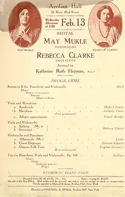 Programme for Rebecca Clarke's recital at the Aeolian Hall