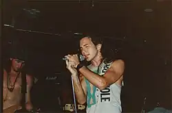 At the same time as the original grunge bands went into decline, major record labels began signing and promoting bands that were emulating the genre.[10] The term post-grunge was coined to describe these bands, who emulated the attitudes and music of grunge, particularly thick, distorted guitars, but with a more