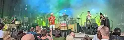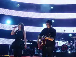 During the mid-2000s, bands such as Modest Mouse, Death Cab for Cutie and Arcade Fire released indie rock albums that broke into the mainstream and gave indie rock recognition.[119] The late 2000s also saw more indie rock bands such as MGMT, Spoon, Interpol, Tegan and Sara, Wilco, The Decemberists, The White Stripes, The Strokes, Animal Collective, Bright Eyes, Rilo Kiley, She & Him, The New Pornographers, Feist, Cat Power, Grizzly Bear, Arcade Fire, The Shins, The Killers, and Vampire Weekend gain popularity around the world, including in the United States, thanks to the rise of independent internet music blogs.[120] The rising popularity of Internet radio also contributed to high album sales for Indie rock bands, despite little to no mainstream radio play.[121] By the end of the decade several of these bands released albums that topped the Billboard 200.[122][123] This trend has been viewed as heralding a new era for rock in the wake of an era of pop dominance by the likes of Lady Gaga and Katy Perry.[124]