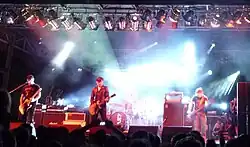 In the early 2000s, a new group of bands emerged into the mainstream which drew primary inspiration from post–punk and new wave and were variously characterized as part of a garage rock, post–punk, or new wave revival.[106][107][108][109] Because the bands came from across the globe, cited diverse influences (from traditional blues, through new wave to grunge), and adopted differing styles of dress, their unity as a genre has been disputed.[110] There had been attempts to revive garage rock and elements of punk in the 1980s and 1990s and by 2000 scenes had grown up in several countries.[111] The Detroit rock scene included The Von Bondies, Electric Six, The Dirtbombs, and The Detroit Cobras[112] and that of New York which included Radio 4, Yeah Yeah Yeahs, and The Rapture.[113] Social networking sites such as Myspace and PureVolume enabled amateur artists to promote their music, and thanks to the internet, many underground unsigned artists become discovered and well known amongst alternative subcultures. The revival hit a peak in 2003–04.[114] Franz Ferdinand from Scotland, also became popular with their debut album in 2004. Though drawing on an indie sound, none of the groups were derivative in a way that could be described as retro.[115] In 2004, Las Vegas-based alternative rock band The Killers released their successful debut album Hot Fuss, spawning hits like "Mr. Brightside" and "All These Things That I've Done". New York-based act The Bravery became popular the following year.[108]