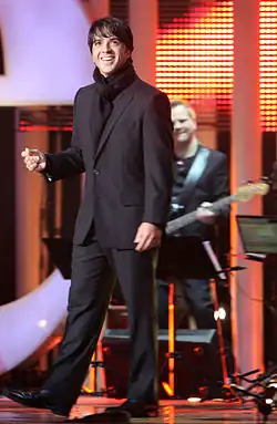 Boy bands maintained their popularity during the beginning of the decade, but their popularity also faded, with the exception of Backstreet Boys, who continued their popularity post–2005, (after a short hiatus between 2002 and 2004).[129] As the typical "boy band" sound was no longer mainstream, they began to transition to more of an adult contemporary, soft-rock and ballad styles of music for the remainder of the decade. By 2003, records by boy bands were very sparse on the Billboard Hot 100, and some members of boy bands left to pursue other projects and solo endeavors, such as Jesse McCartney from Dream Street, Nick Lachey from 98 Degrees, and most successfully Justin Timberlake from NSYNC, whose foray into Blue-eyed soul R&B/Pop spawned a successful solo career.[130] A new strain of boy bands, such as V Factory, Varsity Fanclub, The Click Five, NLT, and the Jonas Brothers, emerged at the end of the decade, but this new generation of boy bands did not reach the glamor and success of those of the 1990s and early 2000s.